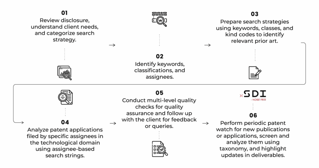 It includes timely alerts, analytical dashboards, and periodic reports to support informed R&D and IP decisions.